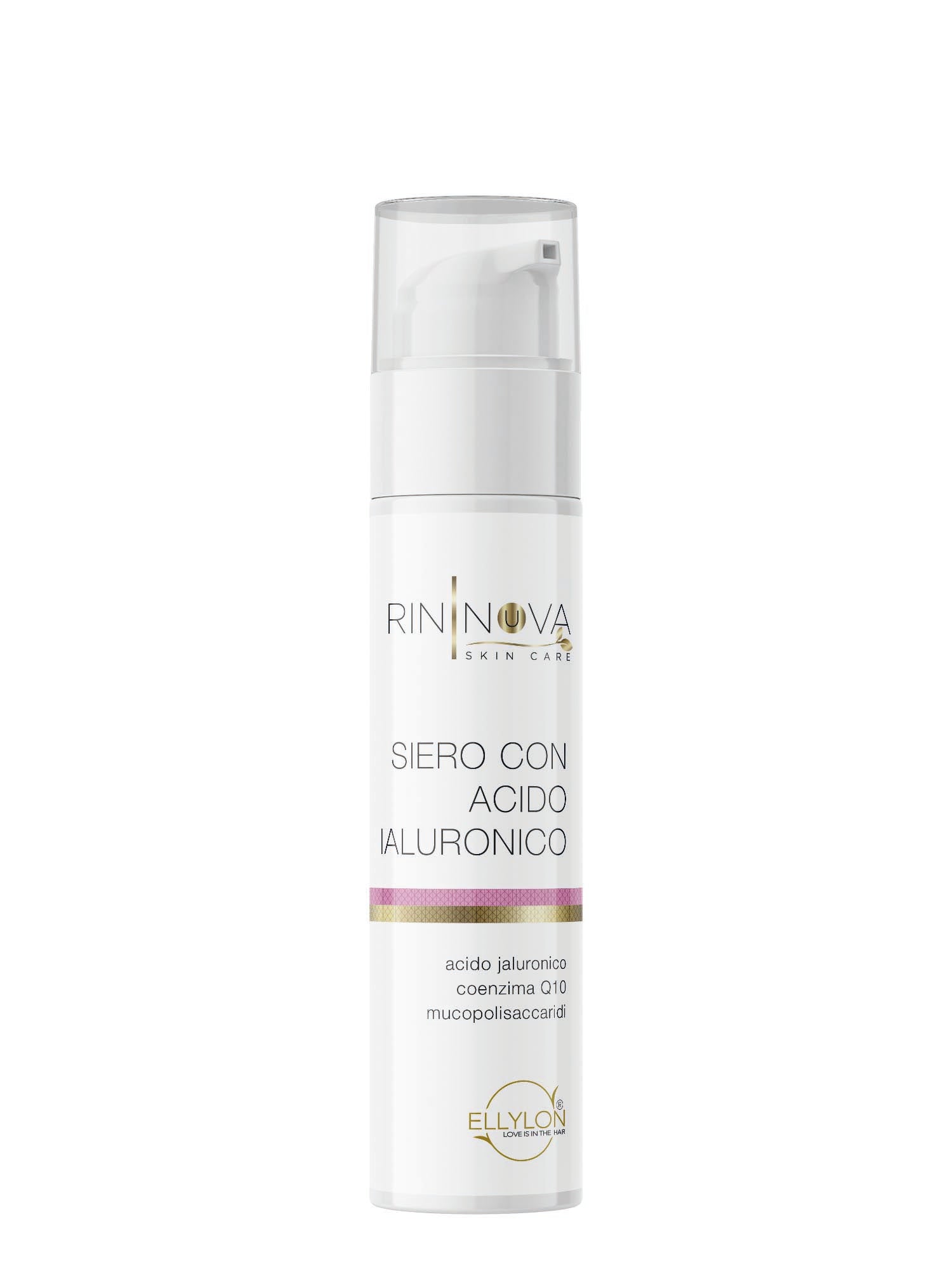 Siero con Acido jaluronico, Coenzima Q10 e Mucopolisaccaridi. Coadiuvante nel trattamento cosmetico di tutti i tipi di pelle, con tendenza a secchezza, disi- dratazioni, rughe. Svolge azione idratante, nutriente, anti-age, combatte efficacemente la formazione dei radicali liberi. Ottimo per le rughe della pelle del contorno occhi.